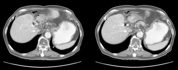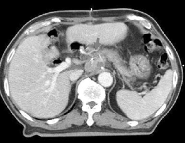 Fig. 4. Abdominal CT scan at 36 months after radiotherapy. At last follow-up, there was no evidence of loco-regional recurrence or distant metastasis.