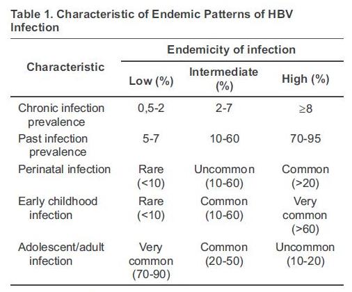 Hepatitis B is highly endemic in developing regions with large population such as South East Asia, China, sub-Saharan Africa and the Amazon Basin, where at least 8% of the population are HBV chronic carriers. In these areas, 70-95% of the population show past or present serological evidence of HBV infection. Most infections occur during infancy or childhood. Since most infections in children are asymptomatic, there is little evidence of acute disease related to HBV, but the rates of chronic liver disease and liver cancer in adults are high.5,6