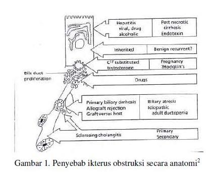 Ikterus obstruktif disebabkan oleh dua grup besar penyebab dari kondisi intrahepatik dan ekstrahepatik.1-8