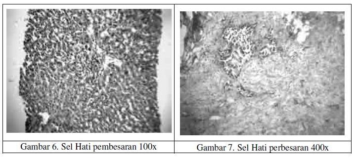 Pada hepatitis gambaran kerusakan dan infiltrasi sel ditandai adanya pigmen coklat pada sinusoid sel Kuppfer, inflamasi periportal, hepatosit membulat dan apoptosis pada hepatitis E. Ditemukan sirosis pada panderita infeksi kronik Hepatitis B atau C, dan kolestasis pada kanalikuli dan substansi hepatoseluler.5,7,9,10,12