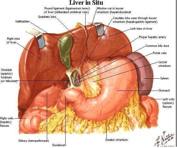 Hati manusia terletak pada bagian atas cavum abdominis, dibawah diafragma, dikedua sisi kuadran atas, yang sebagian besar terdapat pada sebelah kanan. Beratnya 1200-1600 gram. Permukaan atas terletak bersentuhan dibawah diafragma, permukaan bawah terletak bersentuhan di atas organ-organ abdomen. Hepar difiksasi secara erat oleh tekanan intraabdominal dan dibungkus oleh peritonium kecuali di daerah posterior-posterior yang berdekatan dengan vena cava inferior dan mengadakan kontak langsung dengan diafragma.