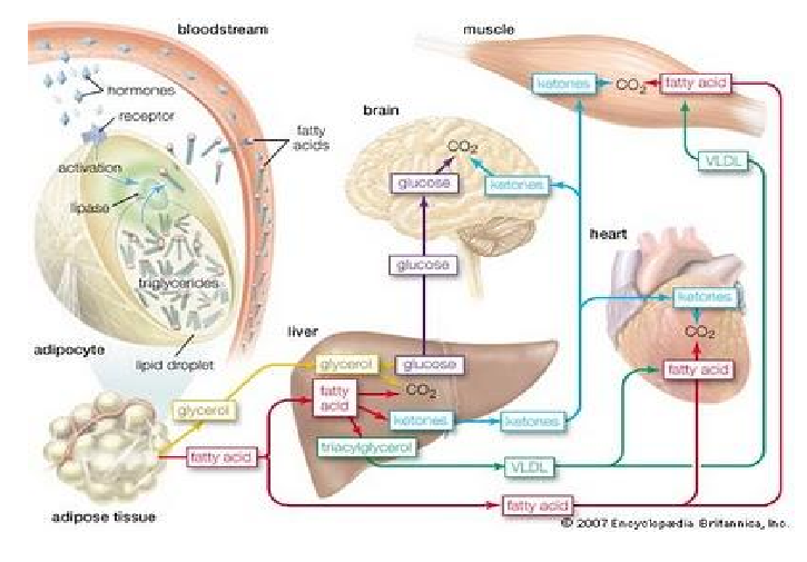 Hati tidak hanya membentuk/ mensintesis lemak tapi sekaligus mengadakan katabolisis asam lemak. Asam lemak dipecah menjadi beberapa komponen :